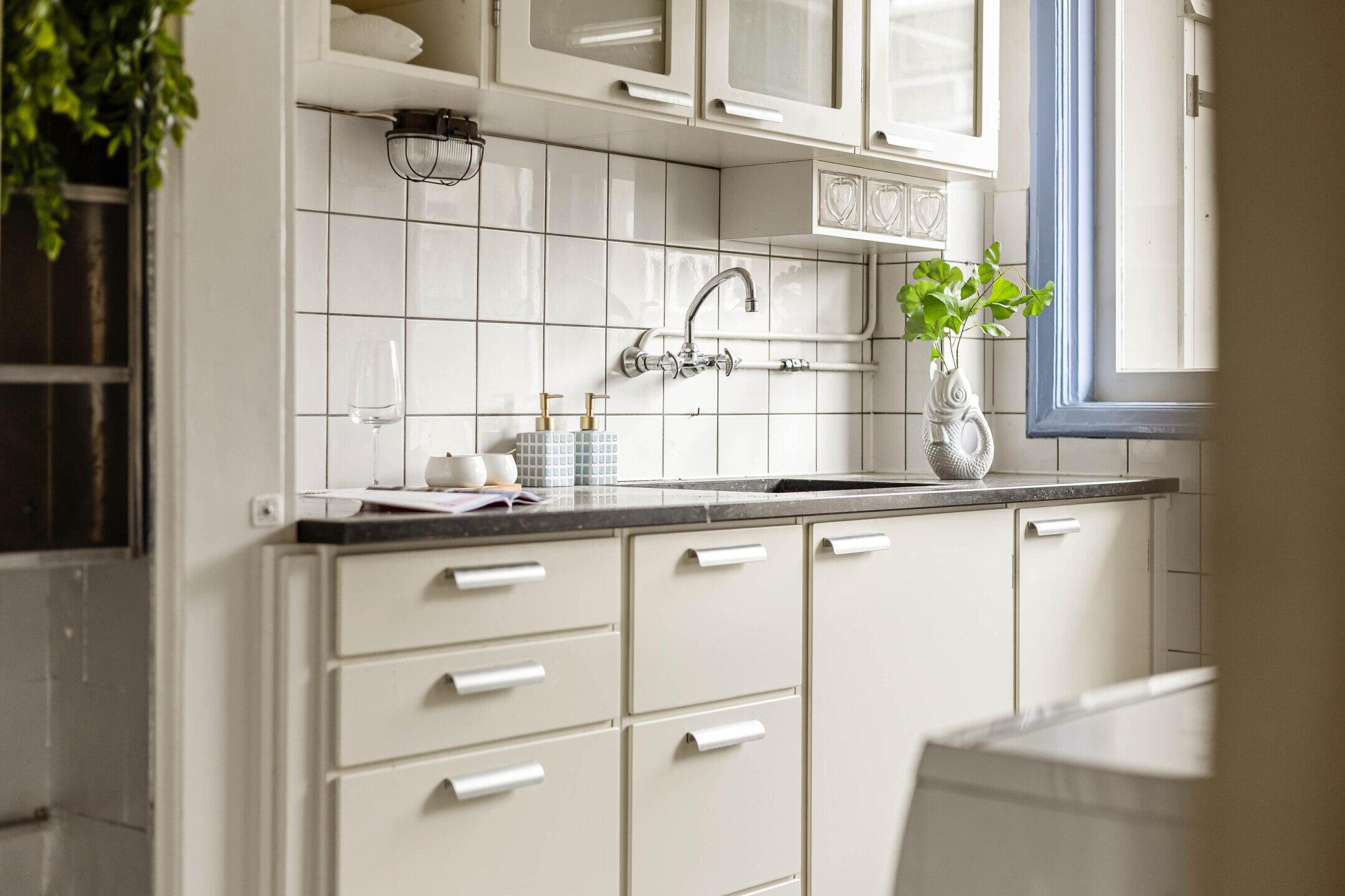Authentic details have been preserved throughout the house, such as panel doors, built-in cupboards, and stained-glass windows. All this forms a wonderful basis for modernization to your own taste.