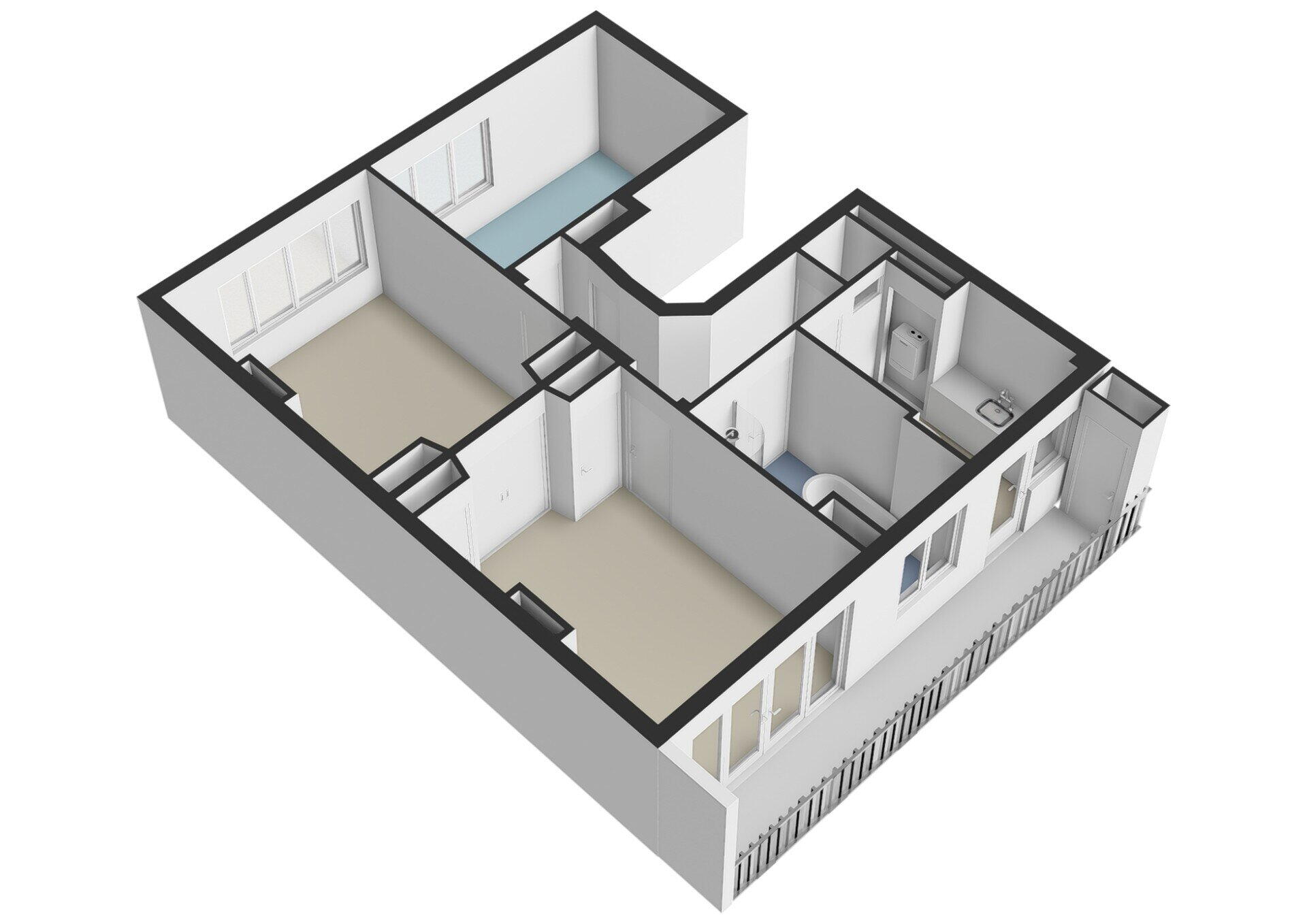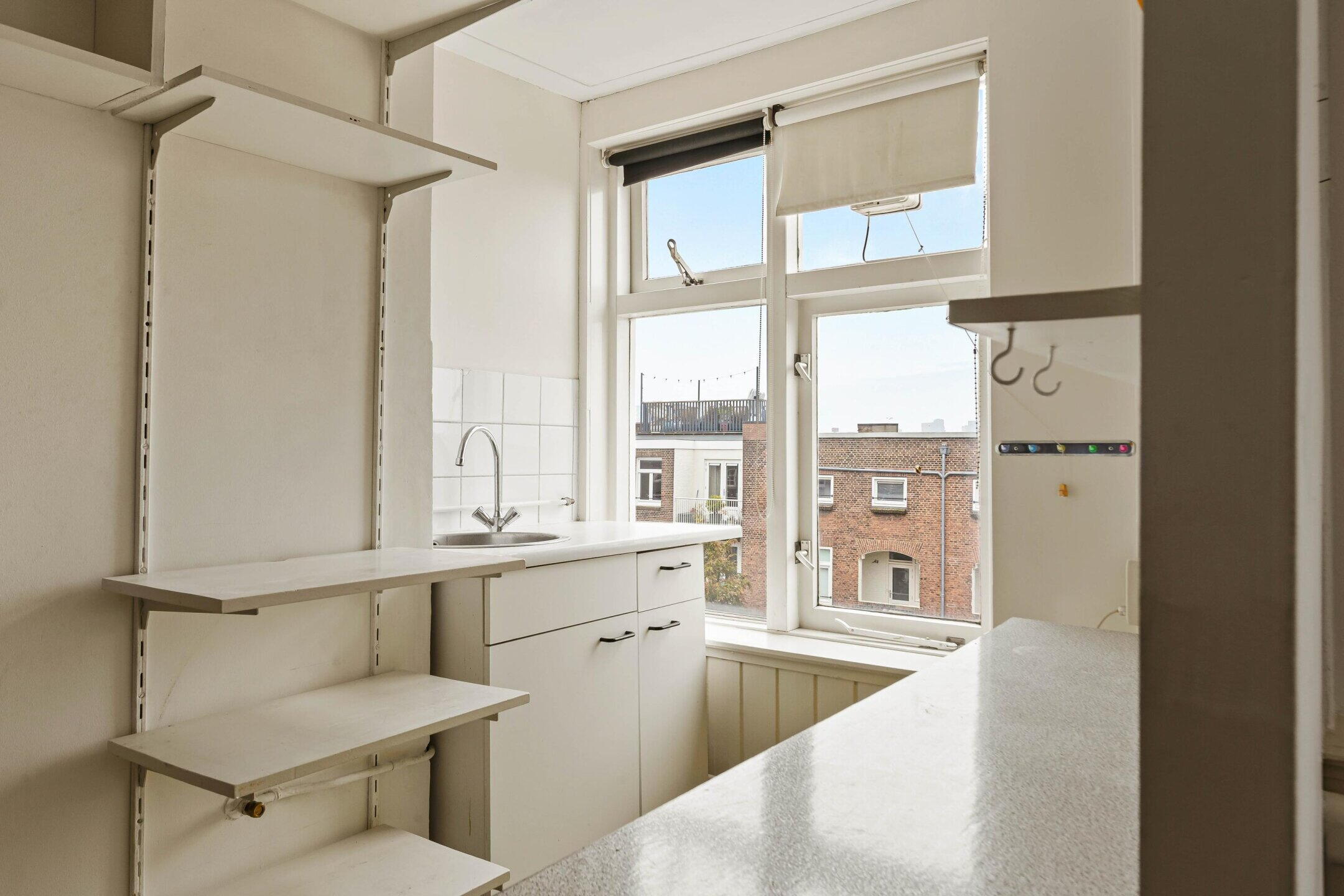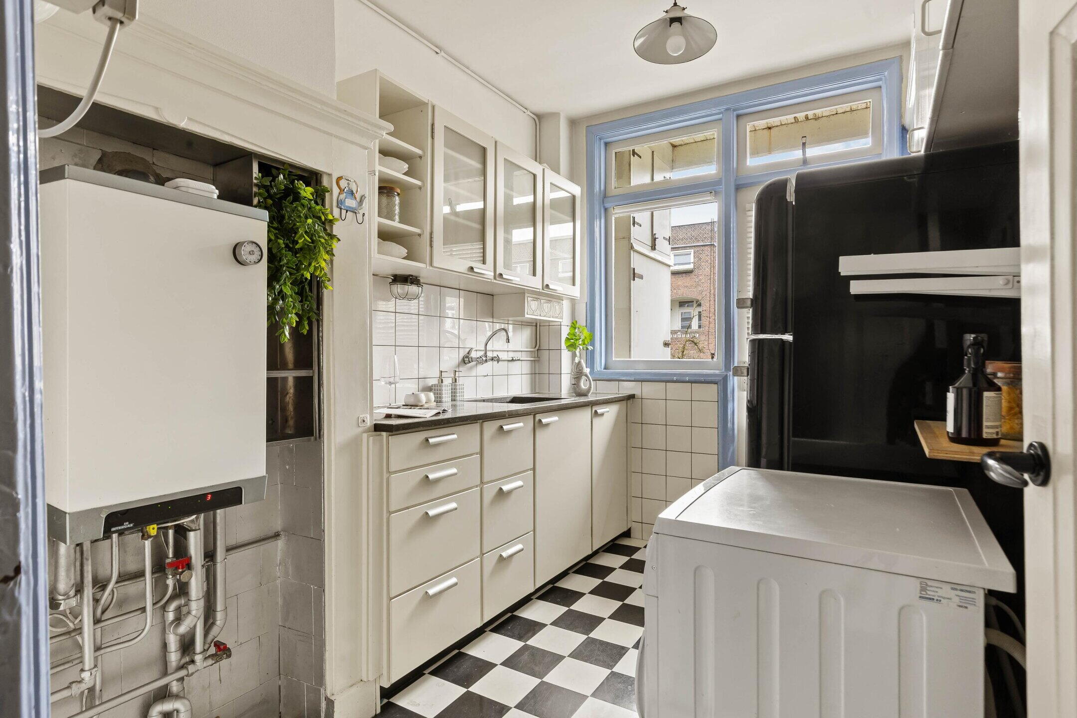 De dichte keuken bevindt zich eveneens aan de achterzijde en heeft directe toegang tot het balkon. De praktische indeling maakt het eenvoudig om hier een moderne woonkeuken te realiseren.