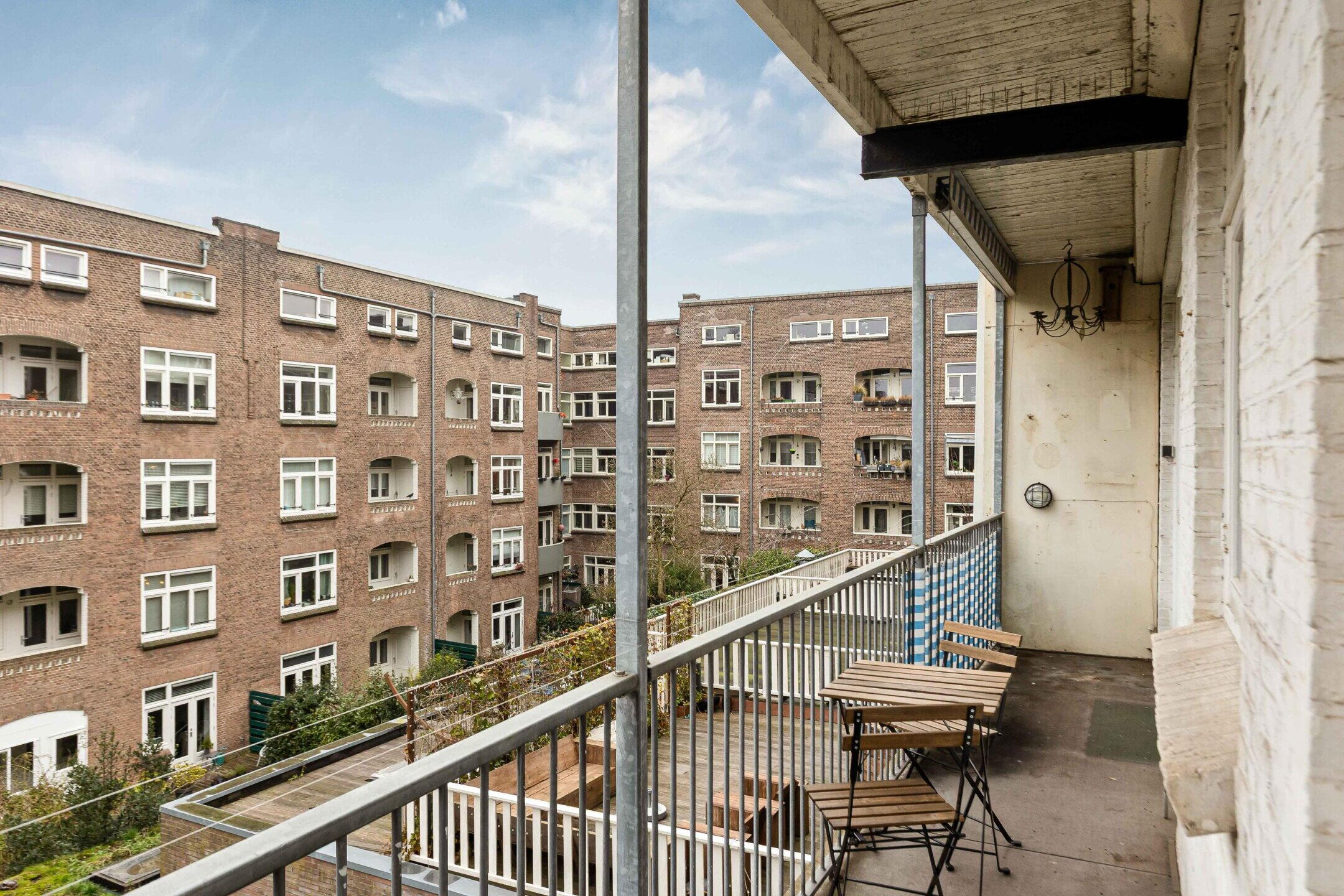 Het balkon aan de achterzijde (oosten) biedt voldoende ruimte voor een zitje en kijkt uit over de groene binnentuinen. Een fijne plek om in alle rust te ontspannen.