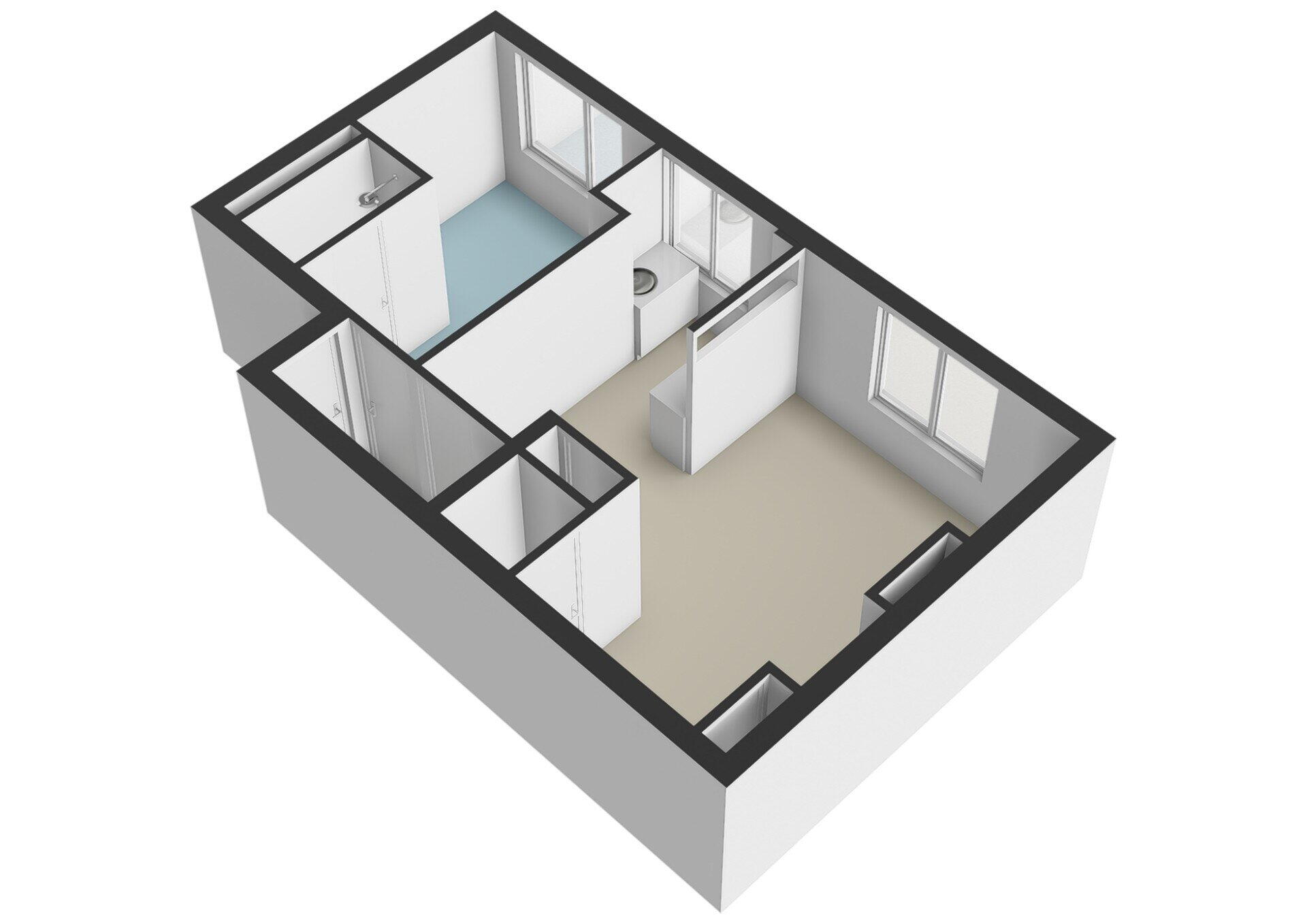 Op de zolderverdieping beschik je over een studio/werkkamer, voorzien van een eigen douche en wastafel. Ideaal als logeerruimte, voor een au-pair of thuiskantoor.